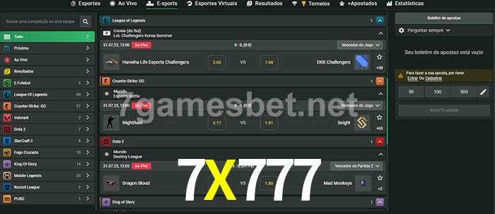 A aposta 7X777 oferece aos jogadores a experiência mais conveniente de apostas em eSports!
